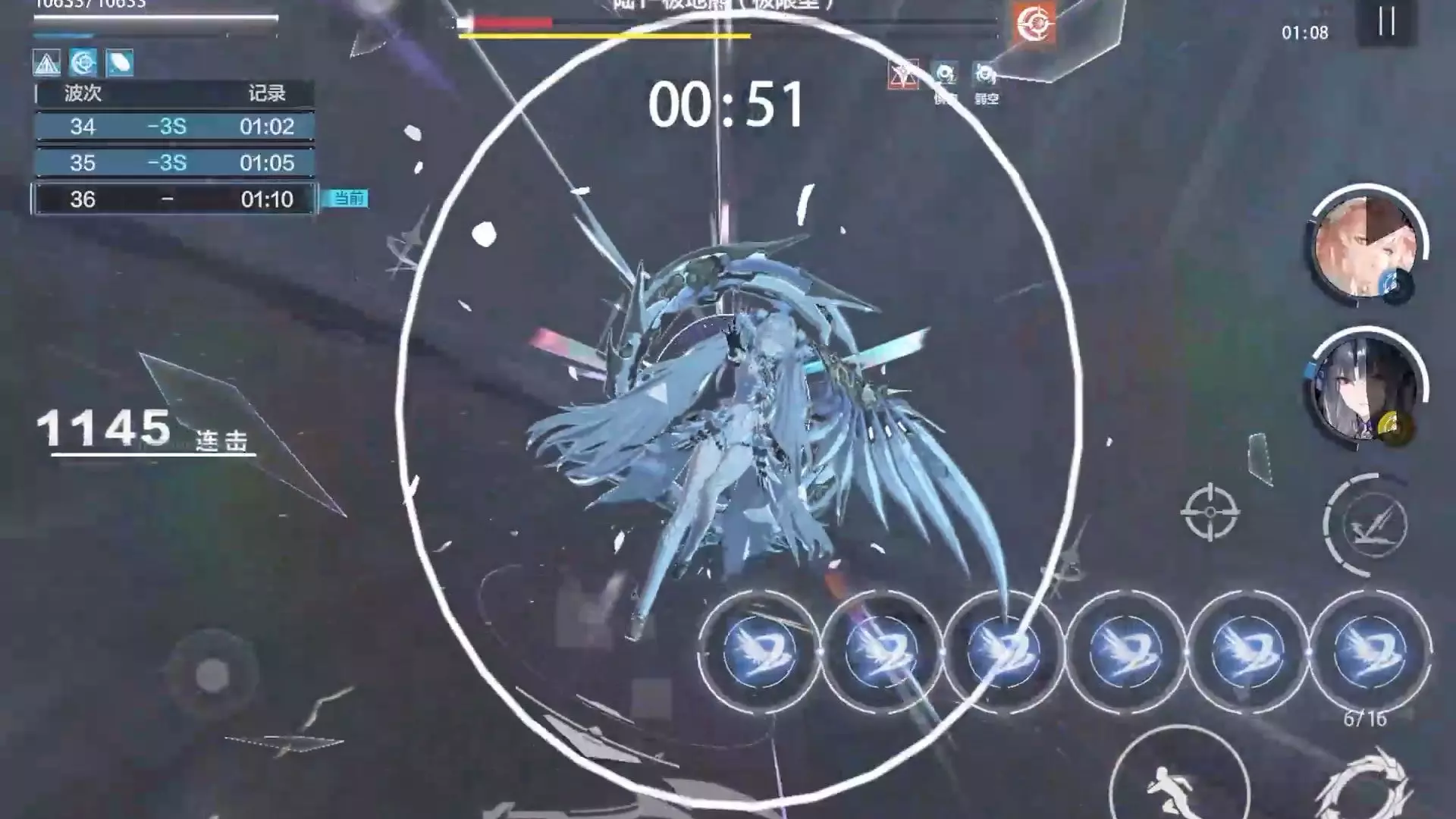 这是手游《战双帕弥什》3.0版本的战斗内容,展示了使用电属性角色鏖战BOSS苦刑之女·幻妄的战斗画面,呈现了战斗中的连击、技能释放等战斗场景。