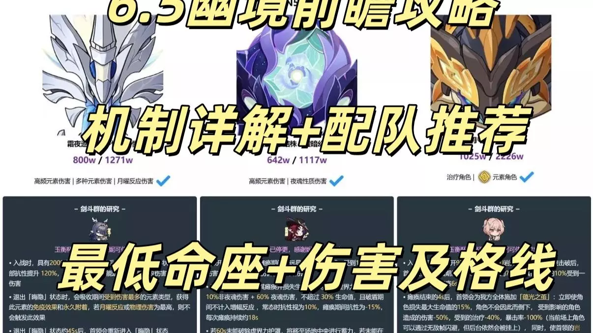新的一期幽境危战 蕴光月守宫 深邃摹结株 霜夜巡天灵主 原神6.5版本 月之六活动已公开的阵容 机制解说与队伍完整配队推荐 希望可以帮助到大家 感谢平台推送播放…