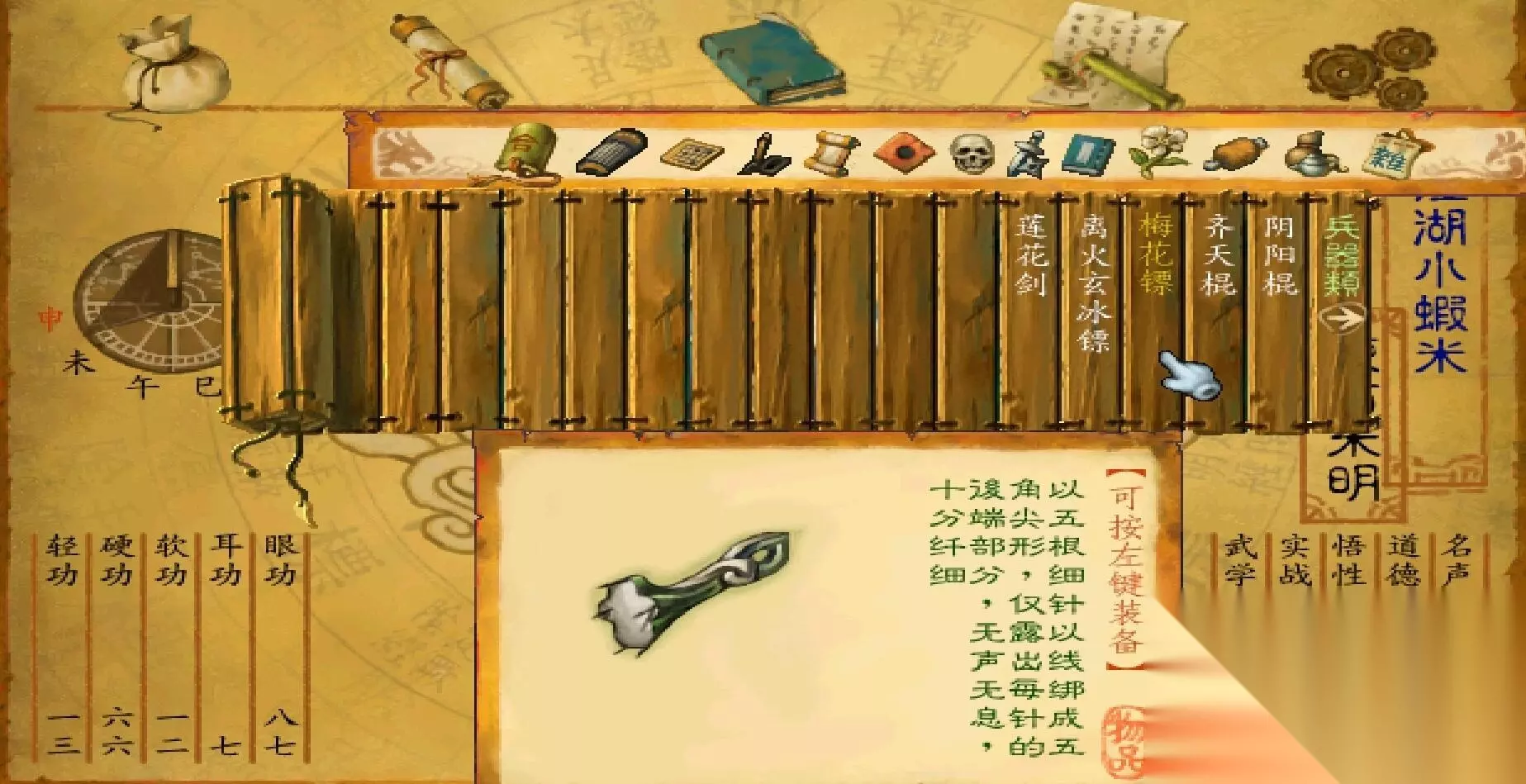 最后一种是综合型,让你能内外兼修,将力量和气脉的点数相对均衡地分配,能够根据不同的战斗情况灵活运用外功不同的招式。为了保证存活能力和机动性,体魄和敏捷也需要适当加点,使角色在血量、回避率等方面都有一定的提升,能够更好地应对各种挑战。最后剩的几点,可以分到潜力上,略微提升暴击率和命中率,增加攻击的意外性。