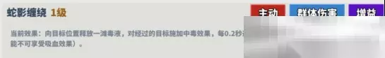 普攻100%概率附加持续6秒的中毒效果,每秒造成20%的伤害。高概率的中毒效果确保了持续的伤害输出,配合其他技能,能打出成吨伤害。 觉醒技:毒蛇之影