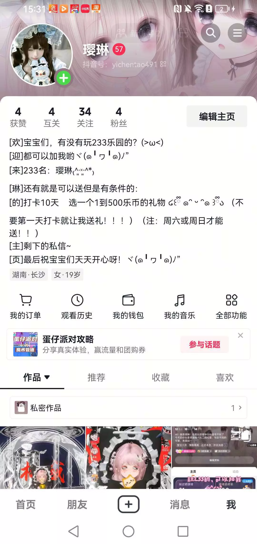 我的抖音咩!别老是让我送礼!看清条件在说!