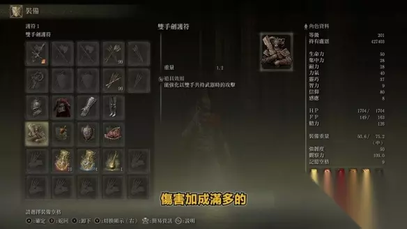 护符推荐 双手剑护符or圣战护符交替使用。 打王带双手剑护符。