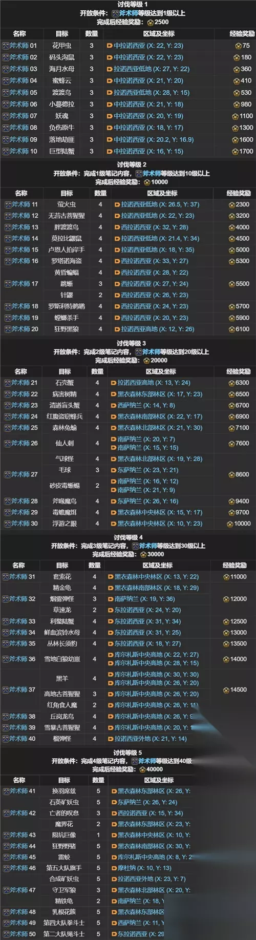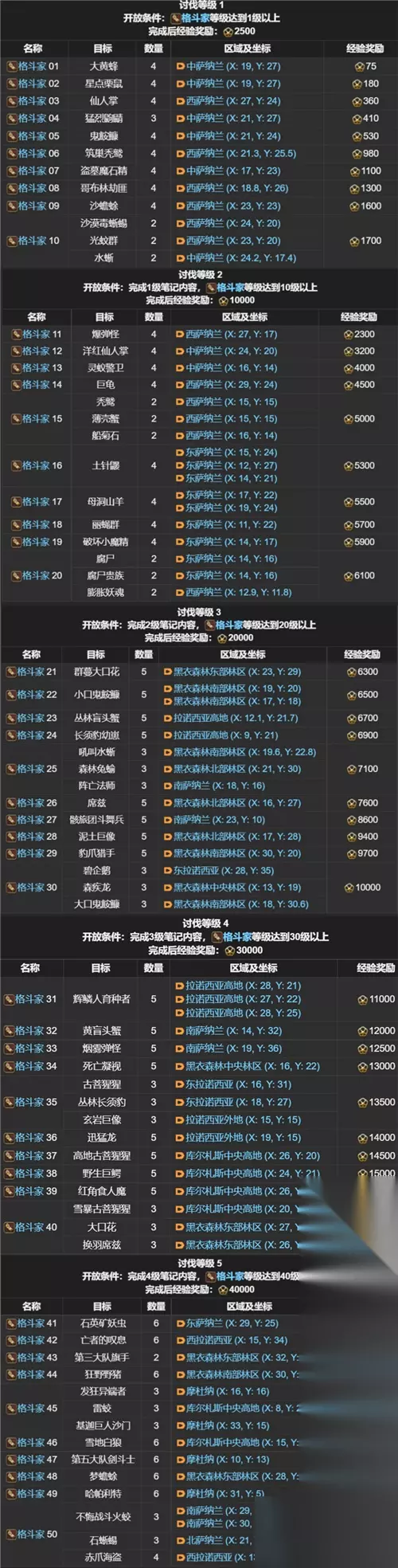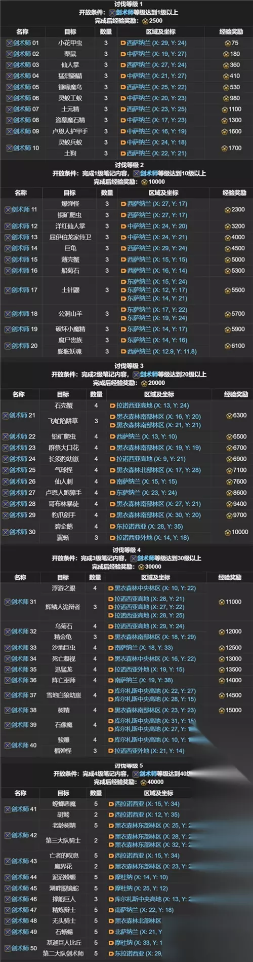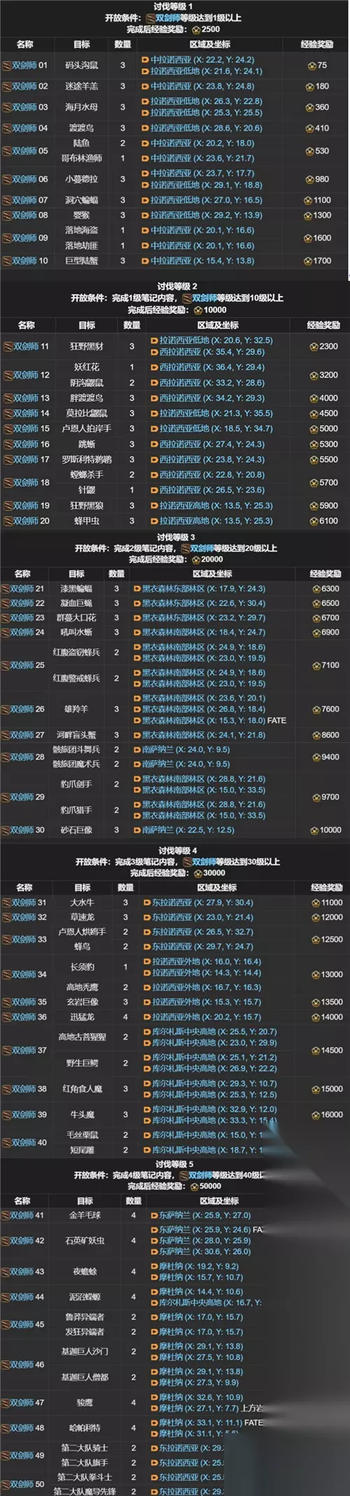 FF14讨伐笔记全职业怪物位置分布图 职业讨伐笔记: 剑术师