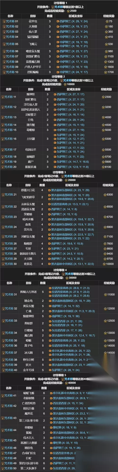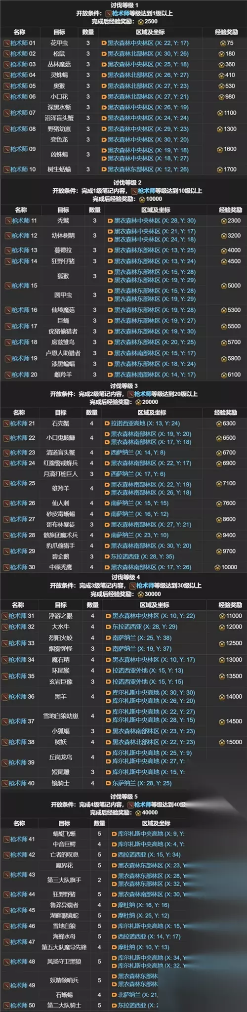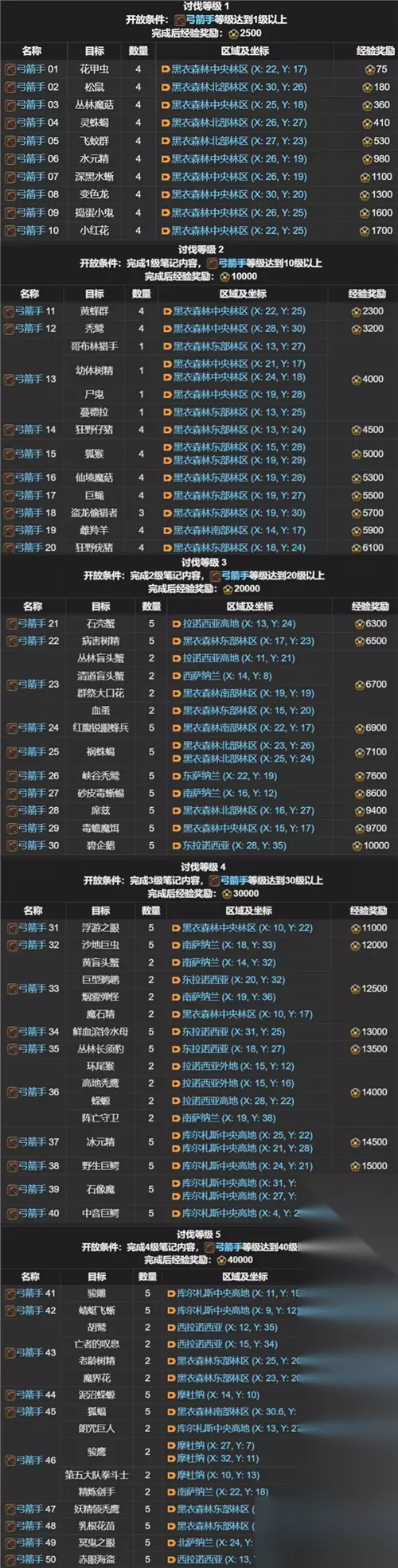 FF14讨伐笔记全职业怪物位置分布图 职业讨伐笔记: 剑术师