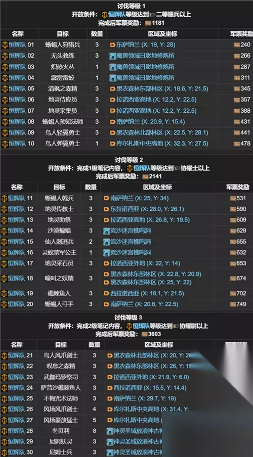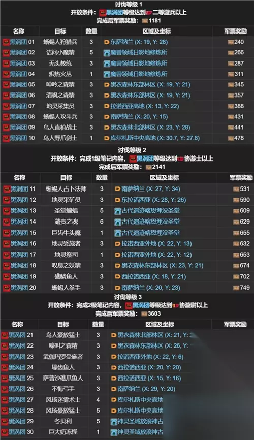讨伐笔记系统简介:(按Ctrl+F查找讨伐任务) 讨伐笔记系统是为战斗精英和魔法导师等职业设计的功能,通过击败指定的敌人来获取相应的奖励。您可以在快捷指令手册的管理分类中选择"讨伐笔记"或按下H键来查看。 打开讨伐笔记后,您可以在分类中选择职业和难度等级,以列出相应的讨伐目标。完成击败指定敌人的目标后,您将获得相应的奖励。在开始战斗之前,建议先确认目标敌人的数量和主要出没区域。 选中讨伐目标敌人后,地图上的敌人头顶会自动显示编号,这样您就能轻松地找到它们。尽快发现标有讨伐标记的敌人并将其击败。 FF14讨伐笔记中的怪物位置对于新手玩家来说非常重要,因为击败这些怪物可以帮助他们提升等级。这些怪物分布在艾欧泽亚的各个地方,以下文章将为您提供FF14讨伐笔记全职业怪物的具体位置坐标。不妨一起来看看吧!