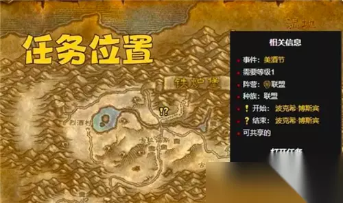 节日硬币的获取方法有两个,第一个是领取节日期间的单次任务(包含一个击杀BOSS任务),四个任务加在一起可以获得100个节日硬币。第二个是通过每天的节日日常任务获得硬币,每天可以获得25个,连续做4天日常就可以了。 获得200个硬币之后就可以完成任务了,然后按照任务指引就可以加入美酒节俱乐部,同时也完成了本月美酒成就。 第四个成就是干掉黑铁矮人。这个成就一共有两步,第一步是在活动营地完成《扔酒杯》的任务,第二步是完成后续的《我喝醉了》任务。联盟方位于铁炉堡门口,部落方位于奥格瑞玛门口。