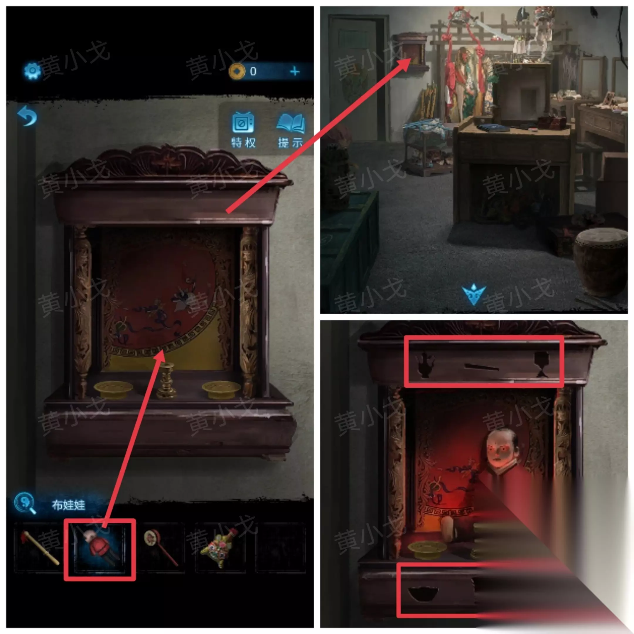 27.(后台)点击神龛,放上【布娃娃】(注意看神龛上的图案:上-酒杯、扇子、灯,下-元宝、签筒、杯子)