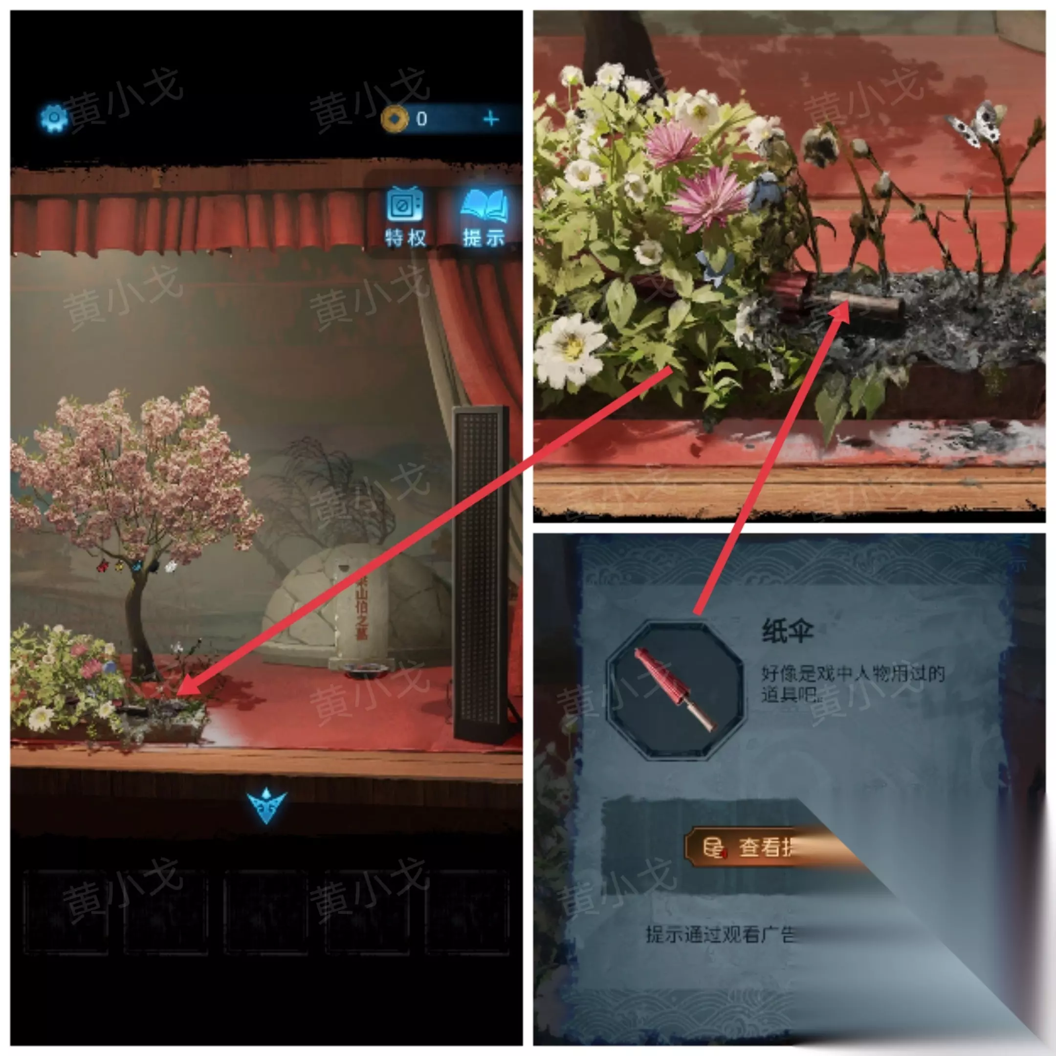 7.点击假花丛,获得【纸伞】