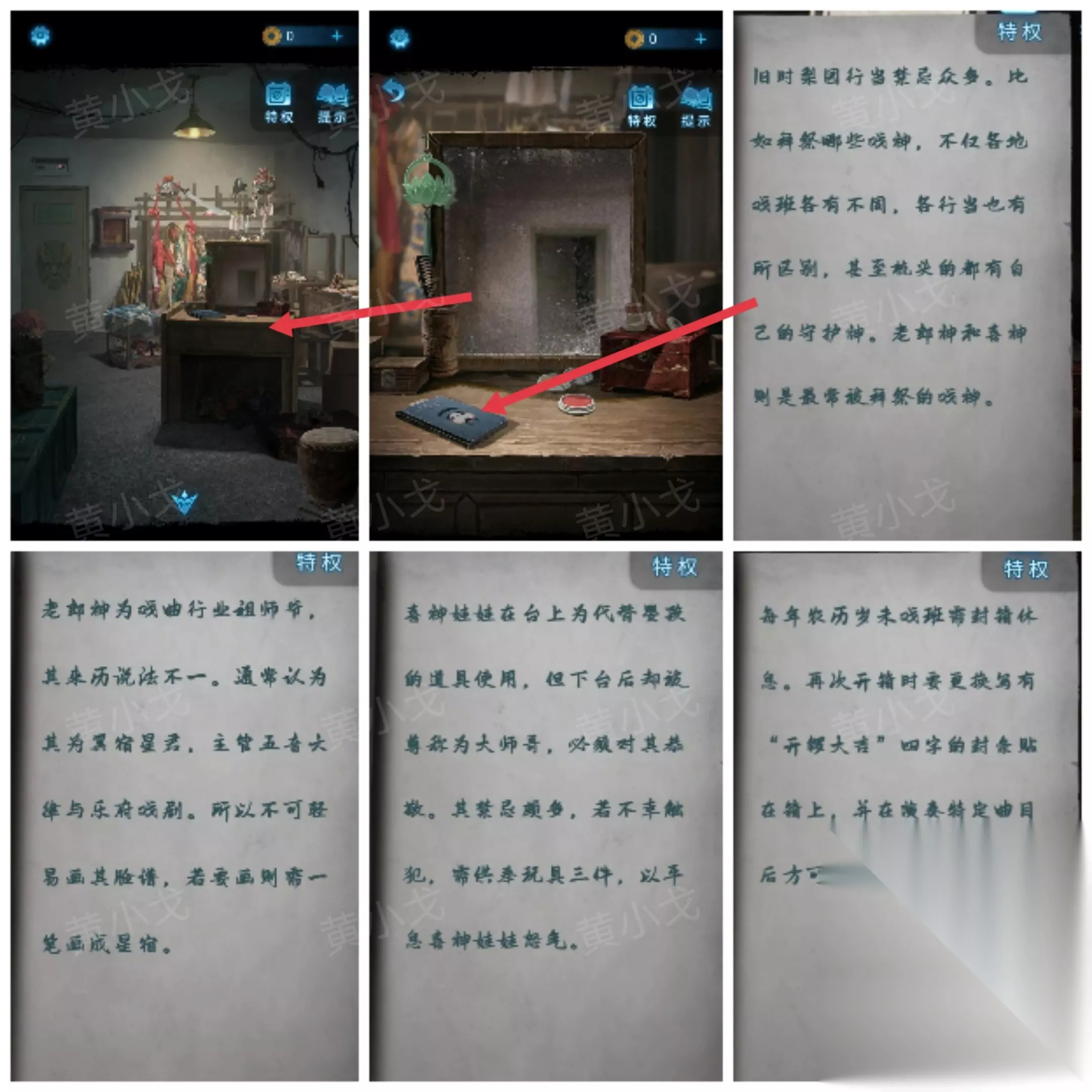 16.(后台)点击中间的化妆台,查看上面的《戏曲文化戏谈》