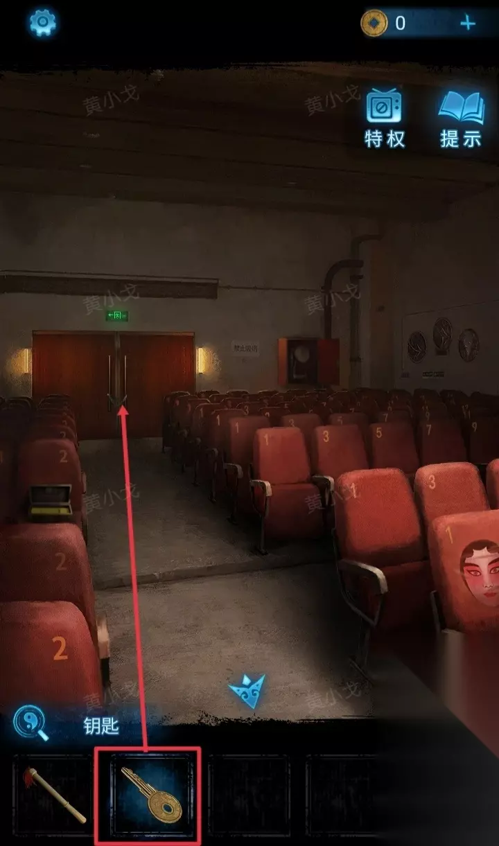 32.(观众厅)用【钥匙】打开大门上的锁链