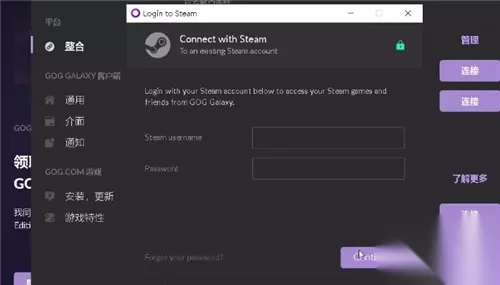 3、连接steam平台。