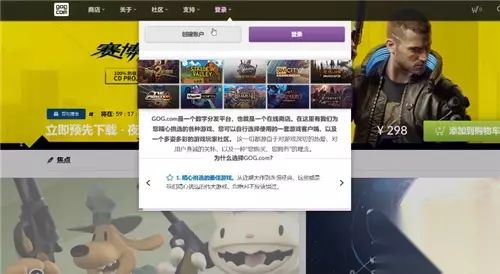 操作阶段: 1、登录刚刚注册的gog账号。