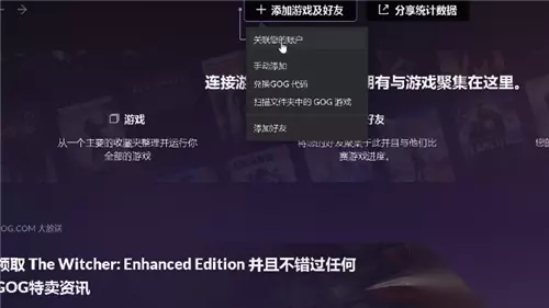 2、在主页面顶栏点击【添加游戏及好友】-【关联您的账户】。