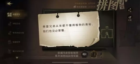 哈利波特拼图寻宝10.7攻略介绍: 一、拼图攻略1 拼图线索1:弗雷兄弟从来都不懂得植物的奥秘,他们也没必要懂。