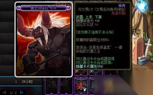 兽王乌塔拉卡片的附魔属性是增加19点物理攻击力,附魔部位是武器、上衣和下装。