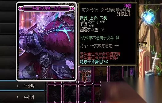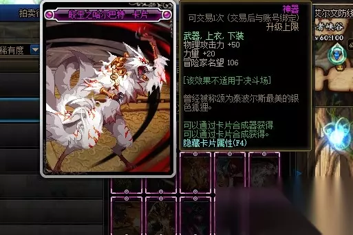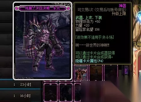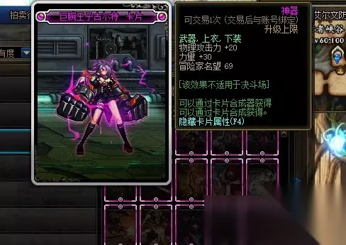 巨腕王子古尔特卡片的附魔部位是武器、上衣和下装,附魔属性是增加20点物理攻击力和30点力量。