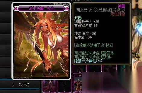 苏尔法娜卡片的附魔部位是武器,附魔属性是增加25物理攻击力、3%的攻击速度和5%的命中率。