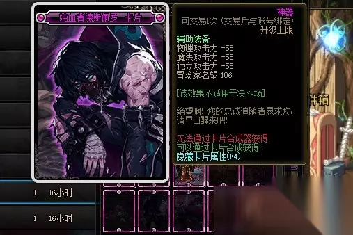 DNF随着版本不断的更新,增加了各种附魔卡片,如今单独以增加物理攻击力的附魔卡片来计算,一共有39张,其中品质最高的传说卡片有4张,最高增加110点物理攻击力。神器卡片共20张,最高增加60点物理攻击力。