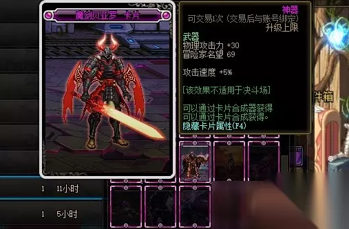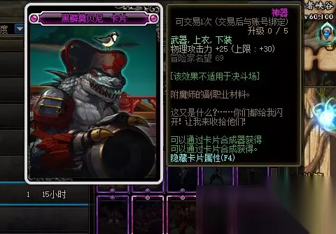 黑鳞莫贝尼卡片的附魔属性是增加30点物理攻击力,附魔部位是武器、上衣和下装。