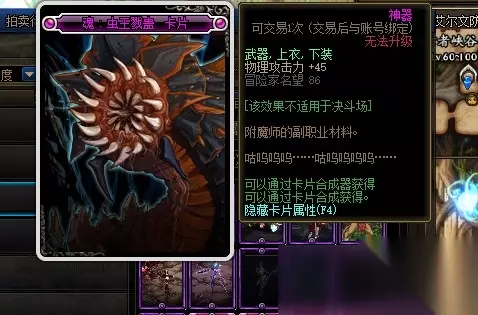 暗之恶魔:艾森卡片的附魔部位是武器、上衣和下装,附魔属性是增加45点物理攻击力。