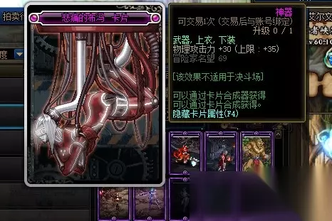 悲痛的布冯卡片的附魔部位是武器、上衣和下装,附魔属性是物理攻击力增加35点。