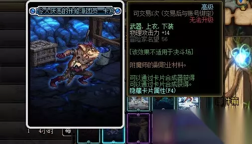 : 令人厌恶的佧修派团员卡片的附魔属性是增加14点物理攻击力,附魔部位是武器、上衣和下装。