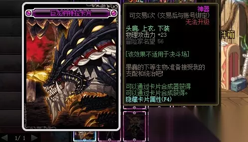 巨龙纳特拉卡片的附魔部位是头肩、上衣和下装,附魔属性是物理攻击力增加23点。