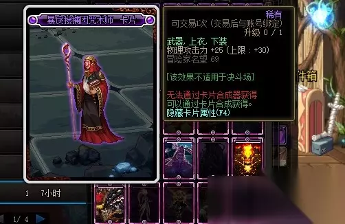 : 暴戾搜捕团咒术师卡片的附魔属性是增加30点物理攻击力,附魔部位是武器、上衣和下装。