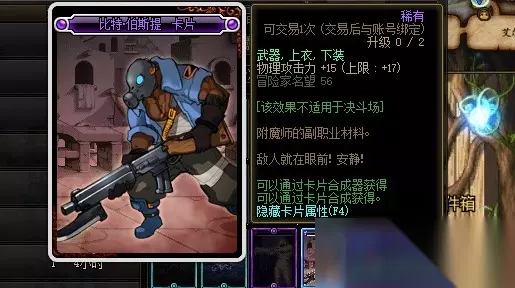 比特·伯斯提卡片的附魔属性是增加17点物理攻击力,附魔部位是武器、上衣和下装。