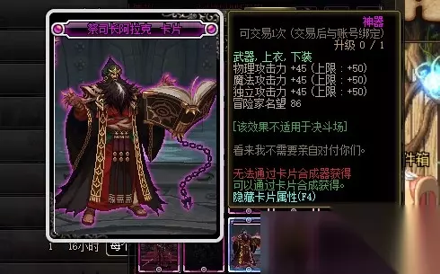 祭司长阿拉克卡片的附魔部位是武器、上衣和下装,附魔属性是增加50点三攻,其中包括物理攻击力属性。