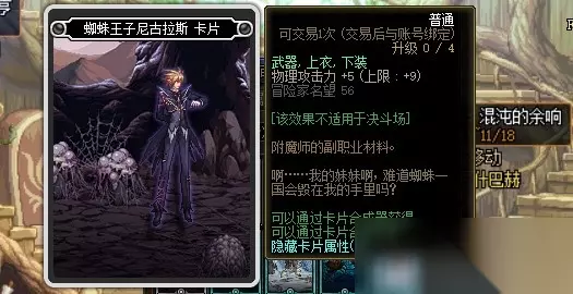 蜘蛛王子尼古拉斯卡片的附魔属性是增加9点物理攻击力,附魔部位是武器、上衣和下装。