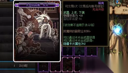 大型马努斯卡片的附魔属性是增加18点物理攻击力,附魔部位是武器、上衣和下装。