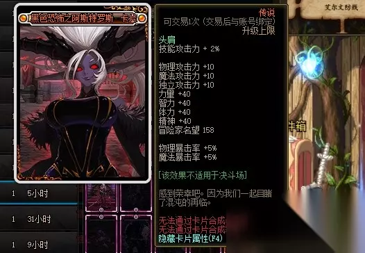 黑色恐怖之阿斯特罗斯的附魔部位是头肩,属性是增加2%的技能攻击力、10点三攻、40点四维和5%的暴击率。该宝珠可以说是春节头肩宝珠的削弱版,春节头肩宝珠的属性是3%技能攻击力、20点三攻和70点四维。