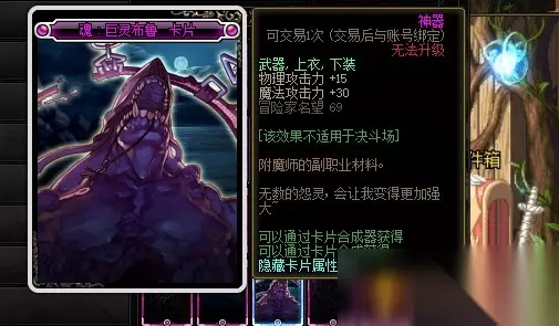 魂:巨灵布鲁卡片的附魔属性是增加15点物理攻击力和30点魔法攻击力,附魔部位是武器、上衣和下装。