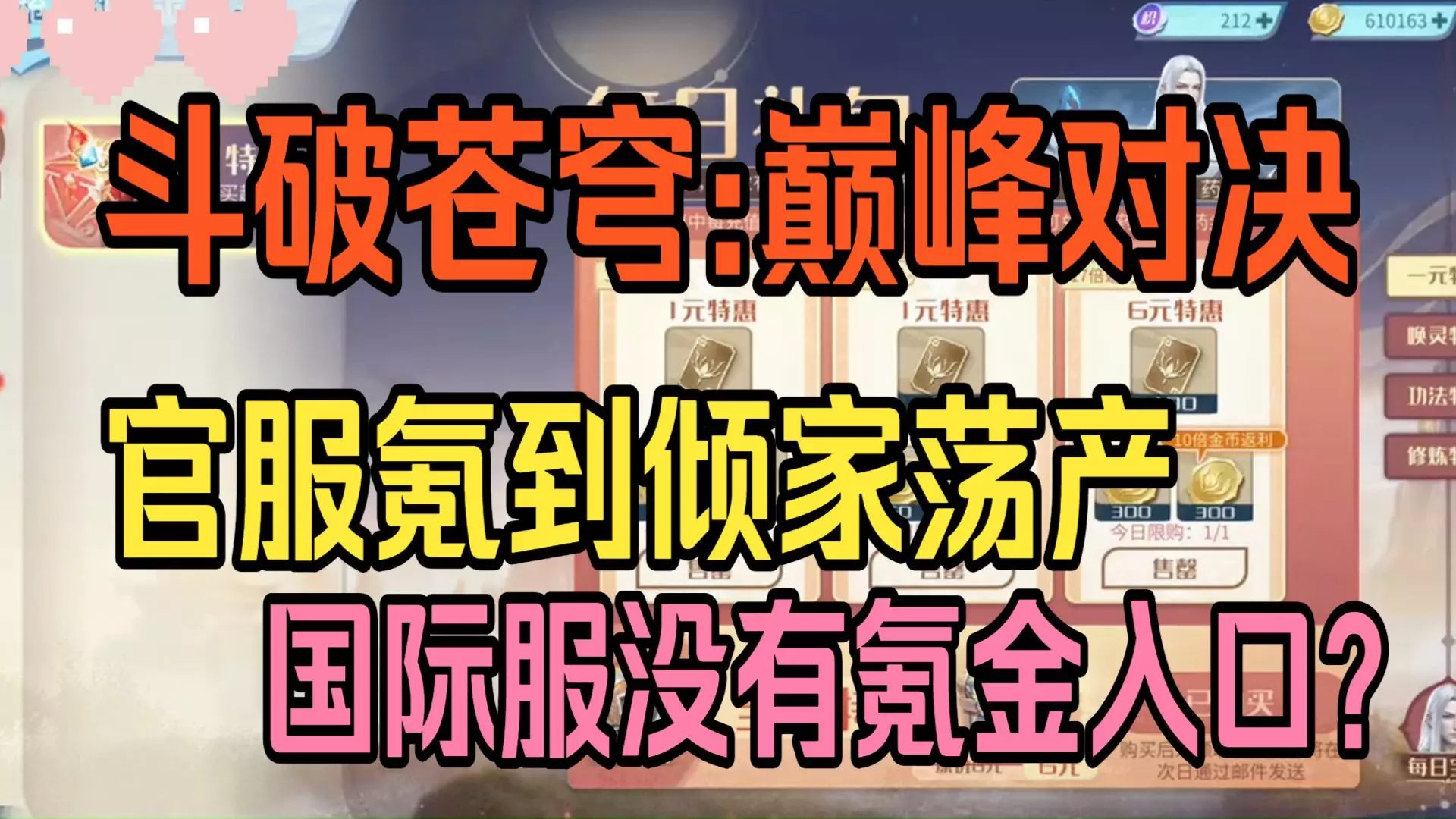 《斗破苍穹:巅峰对决》推出豪横回归福利,回归玩家可看到加刑天、药老等经典角色的欢迎界面,还有14日登录回馈活动,能领取各类道具,另有绿蛮养成特惠礼包可供选购。