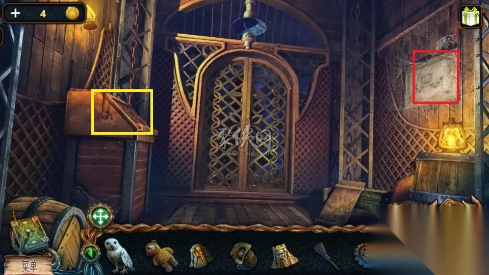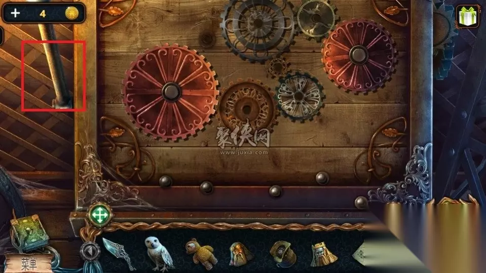74、在电梯中,使用扫帚清理一下红色方框的东西,点击之后可以获得一份图纸,然后点击黄色方框处并将齿轮放进去,接着就回进入一个小游戏。