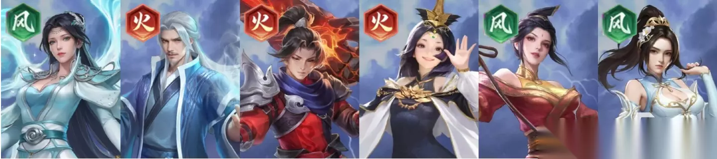 阵容组成:萧炎+萧薰儿+紫妍+黑擎+青鳞+古青阳 推荐理由:萧炎有着怒气越高,伤害就越高的特性,搭配萧薰儿的回怒能力,可令他在战斗中一直保持高怒气。紫妍、黑擎和青鳞则能通过免伤和强大的护盾能力,为萧炎提供不错的输出空间,再加上古青阳的续航能力,令整套阵容没有短板。 三、毕业阵容 1、风系收割队 说明:本阵容均为同一系角色,适合集齐该系列角色的所有玩家组建。