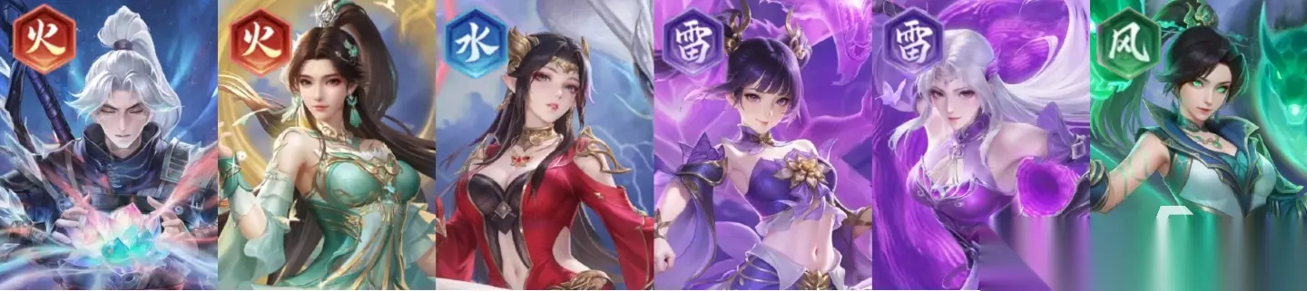 阵容组成:云韵+药老+任意火系角色*2、风系角色*2。 推荐理由:开荒收割队的进阶版,云韵与林修崖一样有着击杀再动的能力,但在单卡强度上云韵要比林修崖强上不少。其他的火、风系角色依旧主要提供羁绊加成触发双源争锋组队buff。本阵容可轻松打到第六章以上。 注:云韵可通过首充获取,药老可在第二次招募时拿到。 二、进阶阵容 1、云韵收割进阶队 说明:本阵容适合零氪玩家、首充玩家、月卡玩家组建。