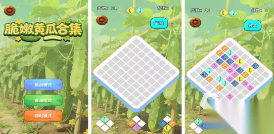 清新靓丽的游戏画风,主页面中还有三种不同的玩法,比如挑战模式或者是普通模式。基于经久不衰的三消玩法为核心,这里还有拍黄瓜或者是拌黄瓜等不同的吃法。这些吃法都以绚丽多姿的图片形式展现在屏幕当中,屏幕最下方又会随机呈现出不同的皇冠图案,通过合理滑动并正确放置的方式,将三个相同的连在一起,即可快速消除。 手机扫码下载233乐园APP预约 预约订阅最新动态 优先233乐园APP下载 4、《全民拼拼图》