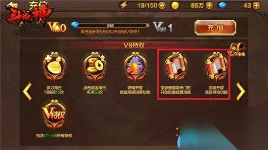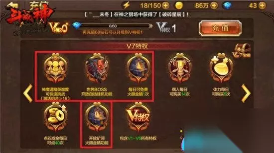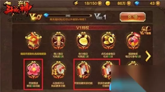 V8特权允许玩家进入神之宝库,并每日免费探索3次。神之宝库的掉落物品与神之猎场相似,主要产出兵器和经文,但奖励更加丰富,因此开启V8的玩家每天务必记得探索3次神之宝库,以免浪费。