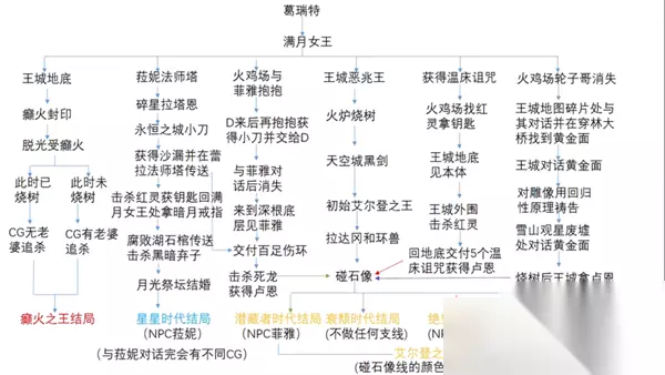 2、癫火之王结局 癫火之王结局算是一个比较疯狂的结局,大意是褪色者接受了三指癫火的力量,成为癫火之王毁灭一切,要达成这个结局其实很简单,直接去王城下水道找到癫火封印并进入接受癫火即可,不过癫火结局前面的前置步骤虽然是引导,但是是对剧情的补充,建议玩家还是按步骤走,这样游戏的故事线会更加完整,详细攻略传送门:艾尔登法环癫火之王结局达成方式。
