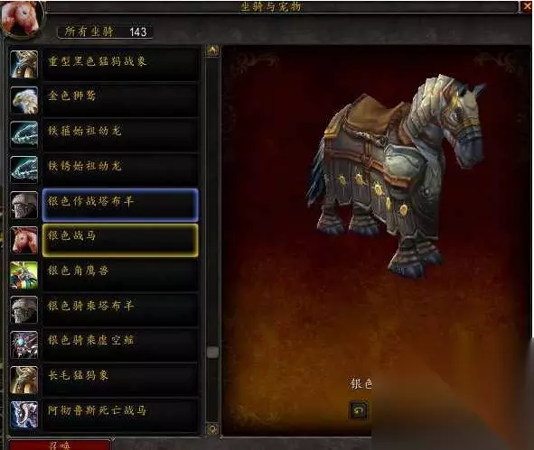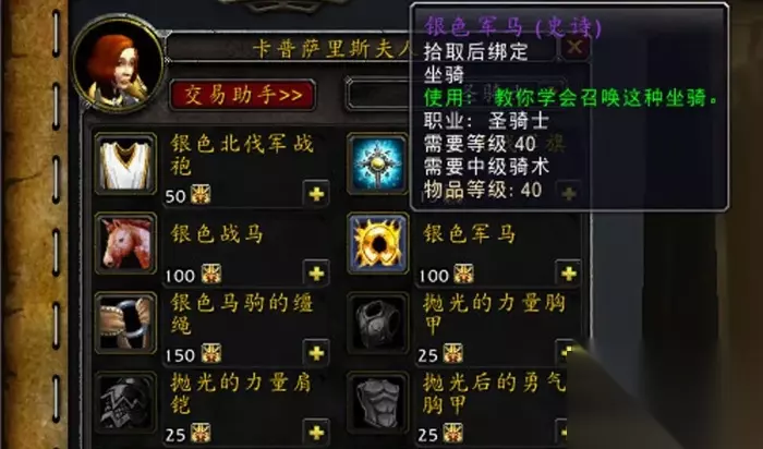 5、另外,[银色军马]只有圣骑士才能购买和乘骑,与[银色战马]的区别在于多了一些装甲。