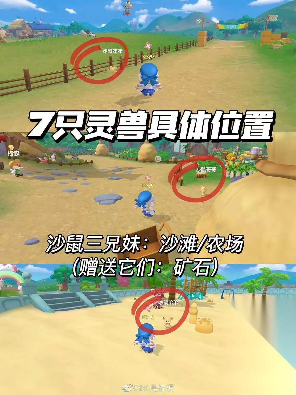 沙鼠三兄妹:沙滩/农场 喜欢矿石,赠送任意矿石即可