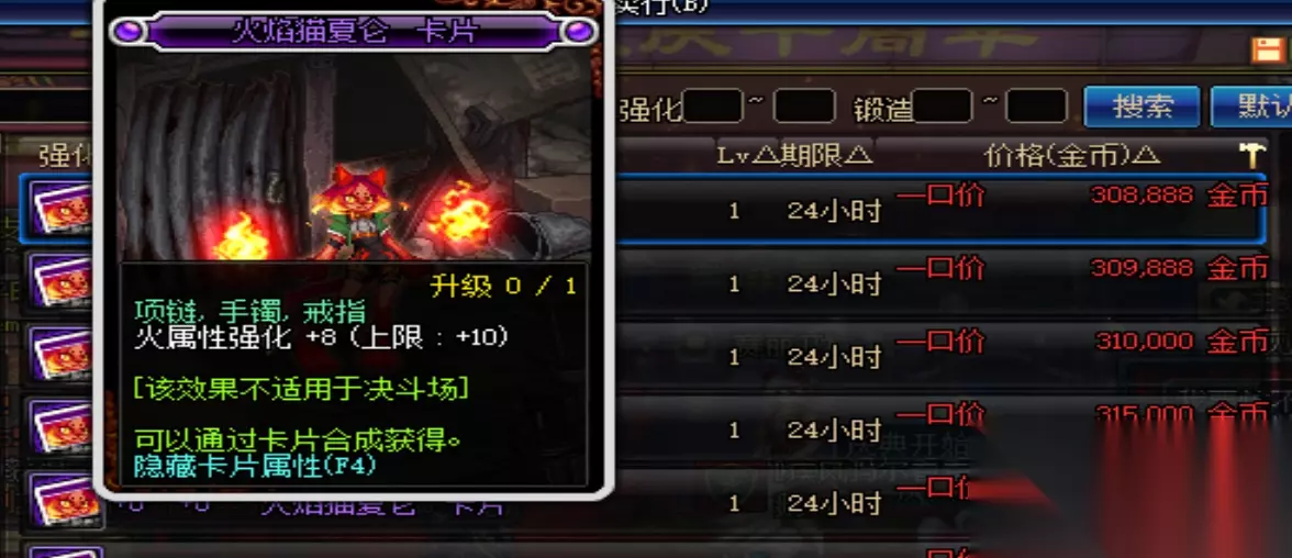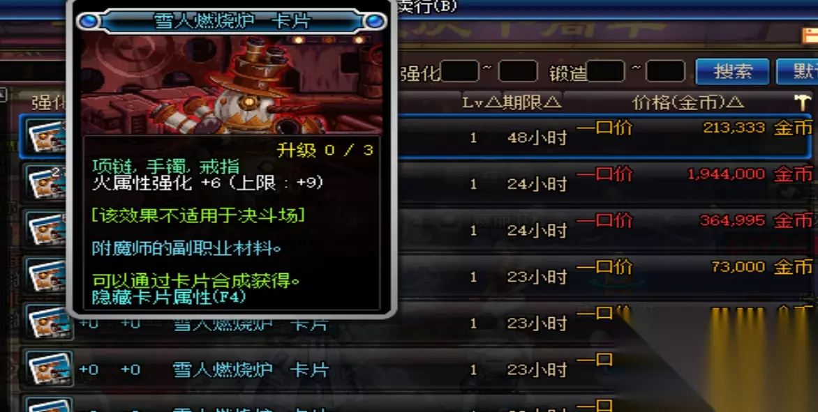 火强成本相对较低,首推的也是蓝卡雪人燃烧炉,未升级前7w,升级9点火强的成本大概是15w一张。但如果你是比较有追求的玩家,那么就请你使用火焰猫的吧,使用纪念卡片成本30w,不使用的话45w以上。