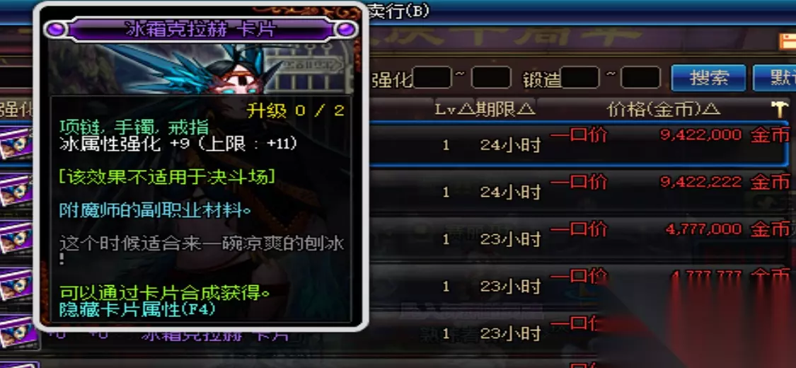 冰强是目前的大热门属强,它的蓝卡不能升级,固定再8冰强,成本则是38w,如果是搬砖号的话不建议你们打冰强。而对于打团号我推荐诺伦冰卡,物美价廉,40w就能买到一张未升级卡片。科拉赫完全不推荐,性价比极低。