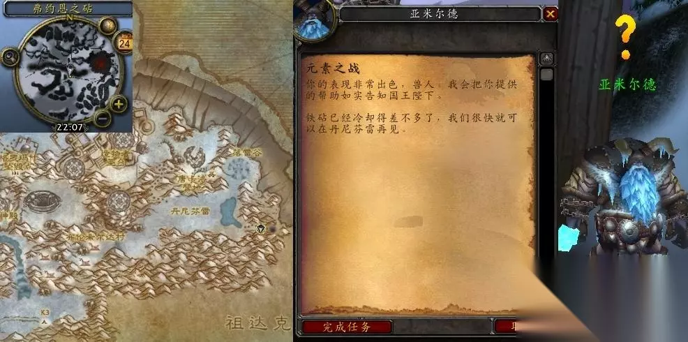 3、任务结束:返回NPC亚米尔德(风暴峭壁,弗约恩之砧)处交付任务。