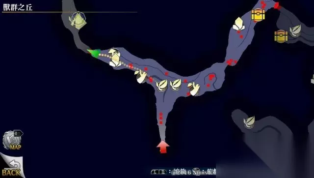 来到下层出口,进入到下个小地图,分布如下,宝箱内容:硕大库鲁果实X2