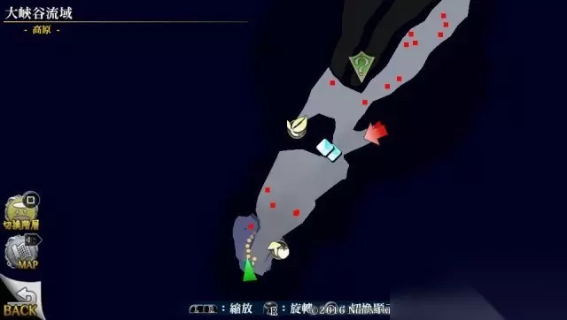 去蓝色问号那里打怪物,打到提示任务完成为止,此怪物看着不多,其实会一直出现,带好血药吧。 然后继续前进到下个地图,开启下地图完成率,返回到大峡谷流域。 大峡谷流域第一个小地图分布如下,部分地图宝箱暂时无法开启,不必理会,里边的恐龙千万不要去打,因为会无限复活,而且可以秒杀现阶段人物,推荐跑过拿了宝箱就走。 目前可以拿到的宝箱:硕大库鲁果实X3,防御灵药X1. 之后从这里出去到下个地图