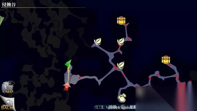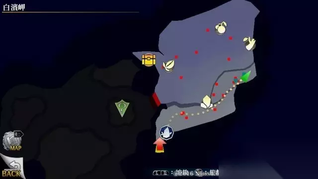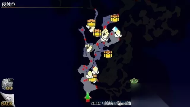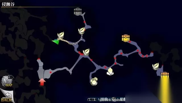 之后返回,继续前进到下个小地图。 小地图分布如下,可以发现景点,宝箱内容:眼药X5