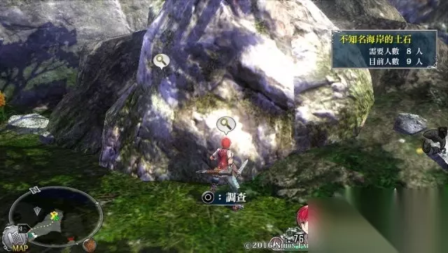 之后出村子,开启剧情必备支线任务,一样会标明,不过必须做此任务,不然无法进行后续剧情。 然后回到那个需要八个人开启的石堆那里,继续前进。